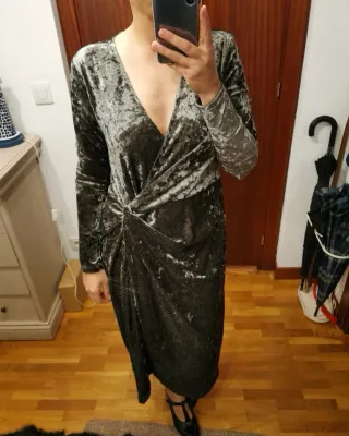 Elegante vestido de terciopelo con un diseño cruzado y drapeado. - Tejido: Terciopelo. - Diseño cruzado. - Drapeado en la falda. Compré la L y no lo pude descambiar por qué quite la etiqueta antes de tiempo.