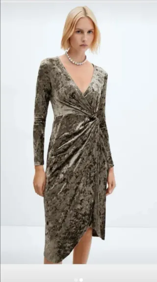 Elegante vestido de Mango con un tacto suave y brillante. - Diseño cruzado. - Tejido de terciopelo. - Manga larga. - Detalle de nudo lateral.