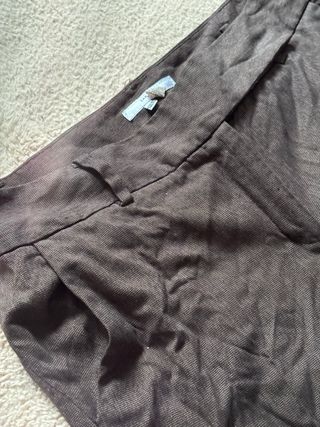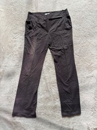 Pantalón de vestir de corte clásico. - Color marrón oscuro. - Tejido con textura sutil. - Bolsillos laterales. - Precio negociable - Cintura ajustable