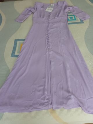 Precioso vestido a estrenar de la marca Lady Pipa en color lila, ideal para cualquier ocasión. Es de manga tres cuartos y es de un tejido ligero con cierre de botones delanteros. Talla XS. Solo necesita plancha