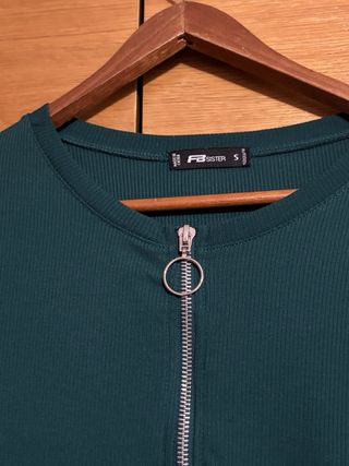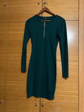 Vestido elástico de manga larga con un diseño moderno. - Cremallera frontal plateada con tirador. - Cuello redondo. - Tejido elástico.