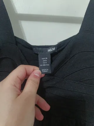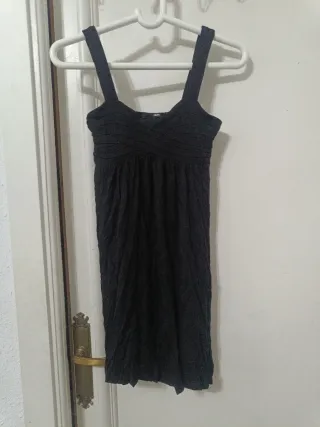 Vestido negro de H&M con tirantes. - Diseño con fruncido en el pecho. - Tejido texturizado.