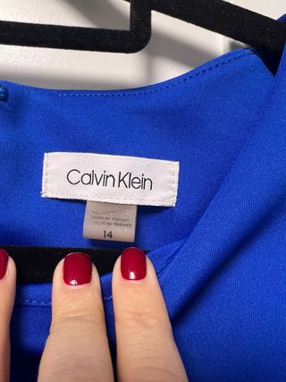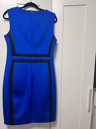 Elegante vestido de la marca Calvin Klein. - Diseño sin mangas. - Detalles en contraste de color negro. - Corte entallado.