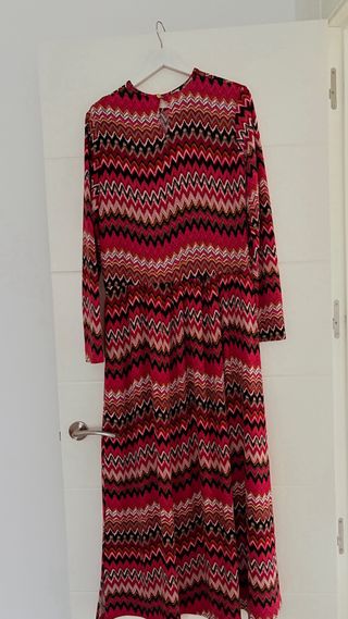 Vestido largo de la marca Coosy con un llamativo estampado. Perfecto estado - Manga larga.