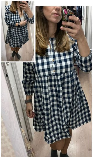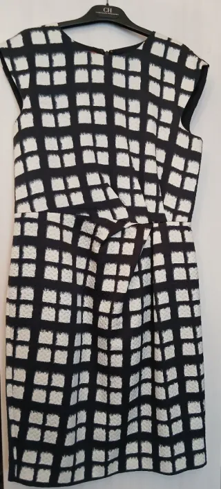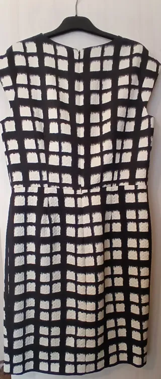Vestido con un llamativo estampado de cuadros en blanco y negro. Su diseño presenta un corte favorecedor y un tejido con textura. - Estampado de cuadros. - Tejido texturizado. Usado en una ocasión