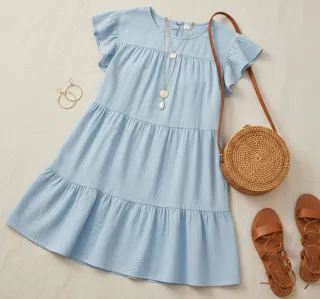 Precioso vestido corto de Shein en color azul cielo/celeste. Tiene un diseño estilo "babydoll" con tres volantes que le dan mucho vuelo y movimiento. Talla: S (queda holgado, por lo que es muy cómodo). Detalles: Mangas cortas con acabado en volante y cierre de botón en la espalda con abertura tipo lágrima. Estado: En perfecto estado, muy poco uso. Tejido: Fresco y ligero, ideal para primavera/verano. #shein #vestidoazul #babydoll #verano #volantes #tallas #casual