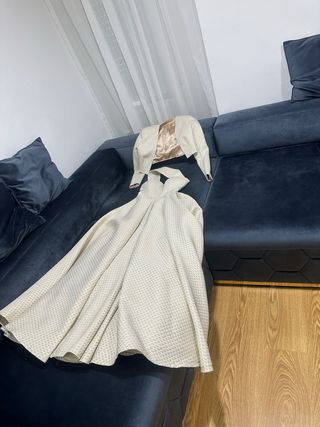 Vestido y chaqueta beige y oro
