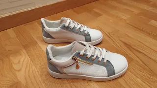 👟✨ Elegantes zapatillas de vestir en color blanco con detalles en gris y beige. Talla 40. Cuentan con un detalle de cremallera dorada en el lateral. - Cierre con cordones. - Detalle de cremallera decorativa. - Diseño moderno y versátil. Muy elegantes y combinables, ideales para looks casuales o más arreglados. Puestas muy pocas veces, en estado excelente. Limpias y listas para usar. Envío por la app o entrega en persona, lo que te venga mejor 😊