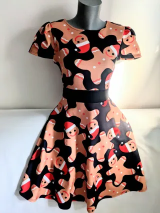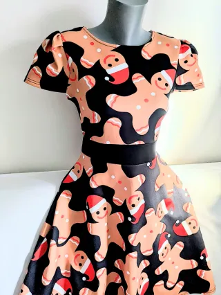 Vestido con estampado navideño de galletas de jengibre. - Diseño divertido y festivo. - Fabricado en Reino Unido.