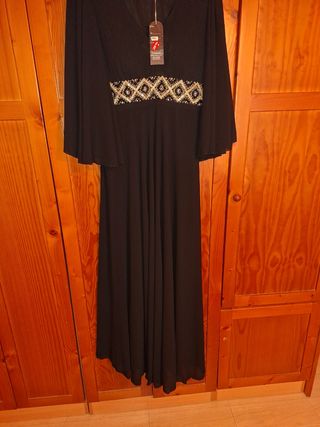 Elegante vestido de fiesta largo. - Diseño con pedrería en la cintura. - Mangas acampanadas. - Escote en V.nunca utulisado .es precioso ideal para etas fiestas de Navidad.su precio original es 30€.