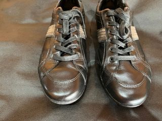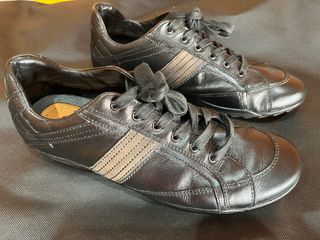 Zapatillas de vestir Geox para hombre. Talla 43. Color negro. - Diseño elegante en piel. - Cierre con cordones. - Detalle de franjas laterales. - Son muy cómodas para caminar y estar mucho tiempo con ellas puestas. Son originales. Fue un regalo de Navidad hace años, pero llegué a usarlas 2 o 3 veces, de ahí que estén tan bien cuidadas. Escucho ofertas.