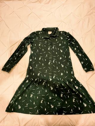 vestido verde botella con motivos de navidad. talla grande por lo que la S es más bien una M