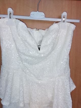 Vestido para fiesta lentejuela pequeña blanca muy favorecedor talla L