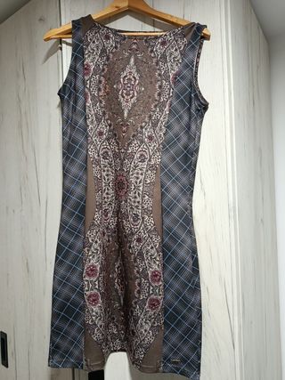 Esta semana, TIRO LOS PRECIOS!! APROVECHA AHORA QUE EN NAVIDAD 🎄 SUBIRÁ DE PRECIO!! Sólo unos días! Vestido con un diseño llamativo y original. - Corte sin mangas. - Tejido elástico. - Cremallera lateral. - Estampado central tipo damasco. - Mangas sin mangas. - Diseño de cuadros en los laterales, tipo tartán. Tejido elástico, hace una figura muy bonita!!!
