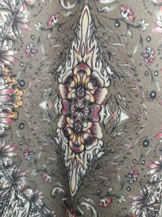 Vestido de manga larga con estampado blanco. Talla 44. Es muy bonito, con tela tipo camisero. Me lo regalaron en Navidad pero no me vale (no da mucha talla) y no tengo el ticket. Está nuevo con la etiqueta puesta.