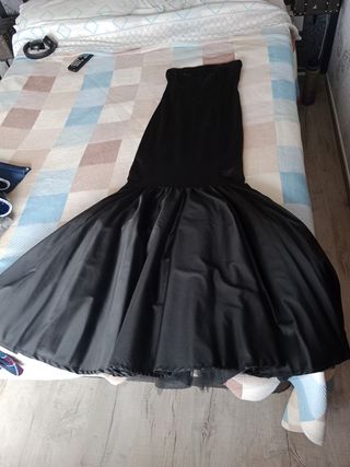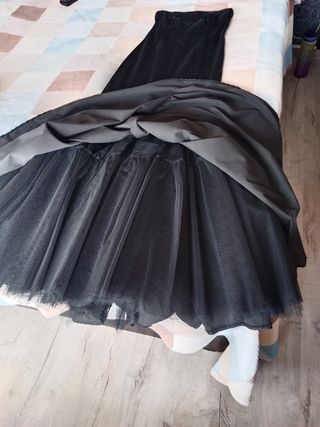 vestido negro entallado de palabra de honor la parte de abajo es con volante y debajo lleva como en cancán puesto queda precioso prácticamente nuevo talla 36 muy bien cuidado vale para fiestas , Nochevieja, bodas para cualquier evento.