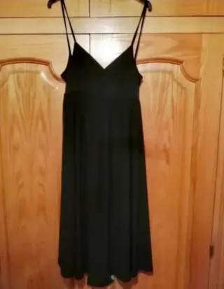 Elegante vestido negro de Zara, perfecto para ocasiones especiales. - Diseño con tirantes finos. - Tejido satinado con caída. - Corte favorecedor.