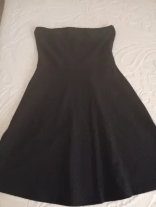 Vestido elegante con escote palabra de honor, en color negro. La tela es muy bonita, en foto no se aprecia bien. Como nuevo, sólo puesto el día de Nochevieja.