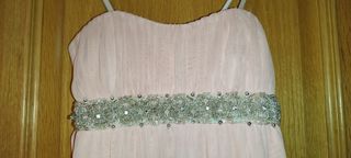 Vestido en tono rosa palo con pedrería bajo el pecho, palabra de honor (sin tirantes) y anudado a la espalda. Comprado en El Corte Inglés, es una 38 aunque algo pequeña. Perfecto para nochevieja!!!!!