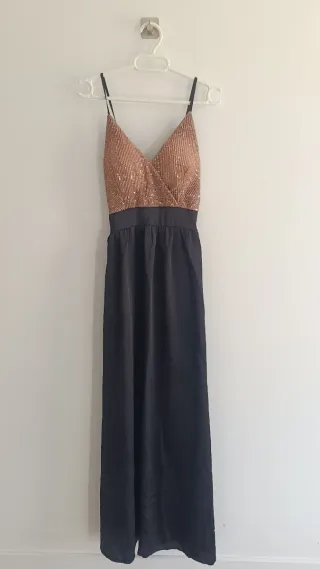 Elegante vestido largo con un diseño de lentejuelas en la parte superior y falda lisa. Perfecto para estrenar en esta Nochevieja ✨✨ - Parte superior con lentejuelas color rosa palo - Falda larga de color negro. - Tirantes finos. - Se ajusta bien - Nunca me lo he puesto ( lo compré para una fiesta pero al final me puse otro)