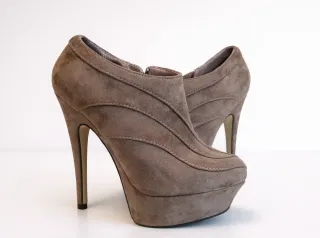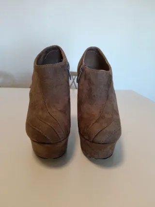 Botines de tacón con un diseño elegante. - Material tipo ante. - Cremallera lateral para facilitar el acceso. - Plataforma delantera. - Tacón alto y fino. Puestos una sola vez, cómo se observa en las fotografías. Moda zapatos tacones vestir elegantes nochevieja navidad fiestas disco gratis bonitos regala