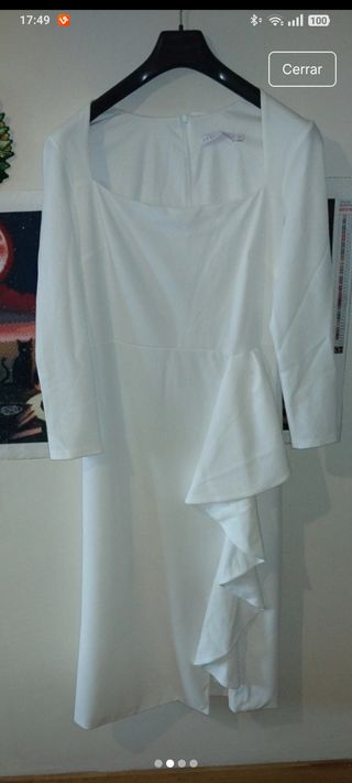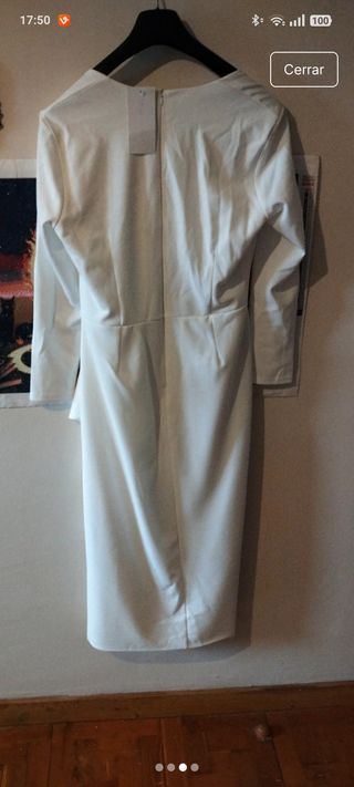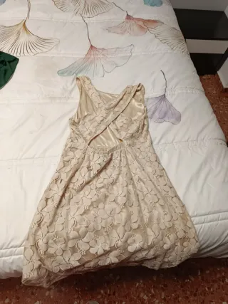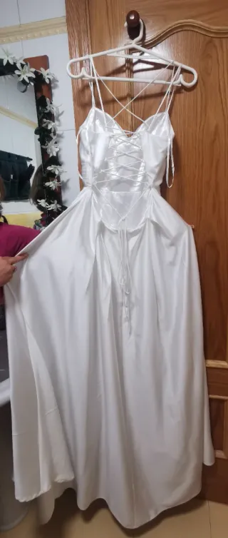 Lo compre para mi boda civil(oct 2026) lo usé ese día y nunca más. Esta nuevo, buena calidad no transparenta ciñe perfecto, suelo usar M y arriesgue y cogí S y queda super bien!! Lo único hay que llevarlo a la tintorería no esta casi sucio pero la parte de abajo si un poco. Puedo mandar mas fotos!! A mi me costó 150e sin gastos de envio! Es ideal! Me da pena venderlo pero no lo usaré mas... me quedo con las fotos...