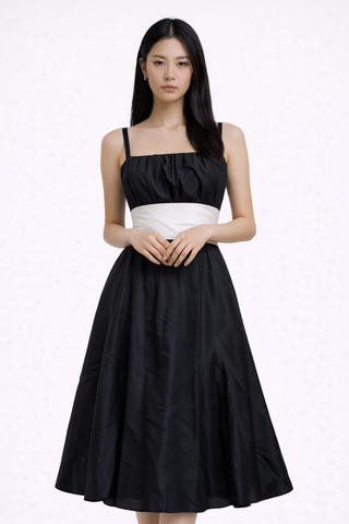 Vestido nuevo sin uso. Midi negro con tirantes finos, escote recto y banda blanca en la cintura que estiliza un montón. Falda con caída elegante (ideal para eventos). Perfecto para boda civil, coctel, cena, graduación, evento. Envío Wallapop o entrega en mano. Precio negociable con ofertas serias. 💘 Si lo reservas antes del 14/02, te hago descuento especial. - Diseño de tirantes. - Falda con vuelo. - Cinturón a contraste.