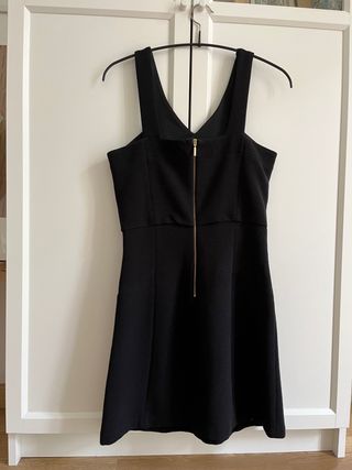 Vestido corto negro de tirantes de la marca Systemaction. Escote en V y detalle de cremallera dorada en la espalda. Ideal para entretiempo/invierno para salir porque es de tirantes pero de tela gordita de buena calidad. Es de la marca Systemaction, hecho en Barcelona! Se combina perfectamente con botas/tacones para esta época del año. Talla S. Lo vendo porque ya no me vale pero me parece ideal ☺️ Está en perfecto estado. Cualquier cosa, pregúntame!!!