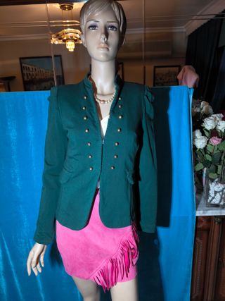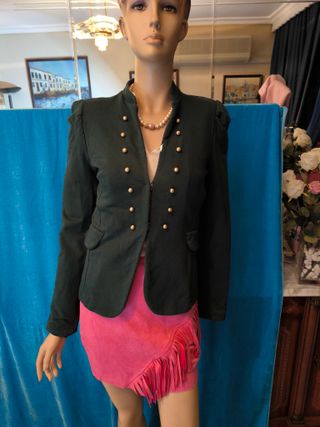 es de Cortefiel,tiene forro,talla 42,da más talla porque es suelto,la tela es gordita,solo puesto una vez,tiene aplicaciones en color plata