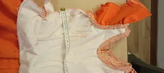 Conjunto de trajes de flamenca para madre e hija. El tejido es Tela Bielástica Mandarina con Lunares Negros de 3cm que no necesita plancha . El vestido de niña es para 10- 11 años y el de mujer abarca entre S y M ya es bastante suelto . Son muy comodos y el color en persona es mas bonito , las fotos no captan bien el tono . Ambos tienen bolsillo por dentro para poder guardar cosas y no tener que llevar bolso. Si te interesan puedes solicitar mas información por privado y mas fotos . Usados solo un dia