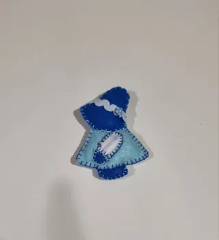 Broche muñeca fieltro azul y amarillo