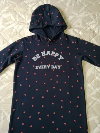 Vestido sudadera con capucha para niña, con un divertido estampado de corazones. - Diseño con capucha. - Estampado de pequeños corazones rojos. - Tejido suave y cómodo. - Talla 158 cm