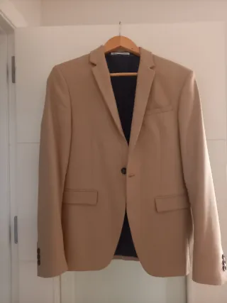 Chaqueta de vestir para niño. - Color beige. - Cierre de un botón. - Dos bolsillos frontales. - Puños con botones.