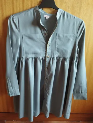 Vestido de niña de la marca Gocco. Es una prenda elegante y cómoda. Talla 12 años - Diseño con cuello mao. - Cierre de botones. - Dos bolsillos en la parte superior. - Cintura elástica con fruncido. - Mangas largas con puños abotonados.