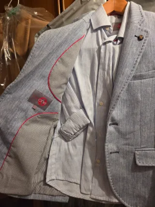 Chaqueta de vestir niño azul y blanco talla 9
