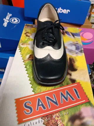 Zapatos infantiles de la marca Sanmi. - Diseño bicolor en negro y blanco. - Cierre con cordones.