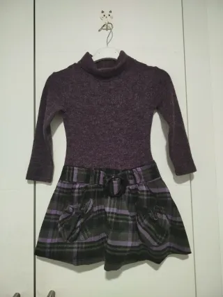 Vestido de punto con falda de cuadros para niña