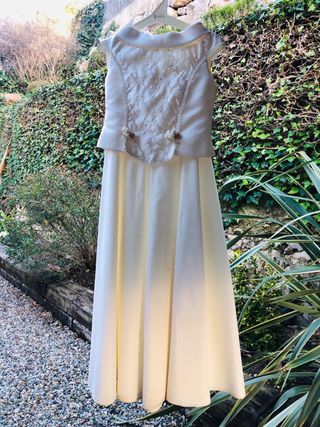 Vestido de Comunión Beige y Blanco Niña 10 años