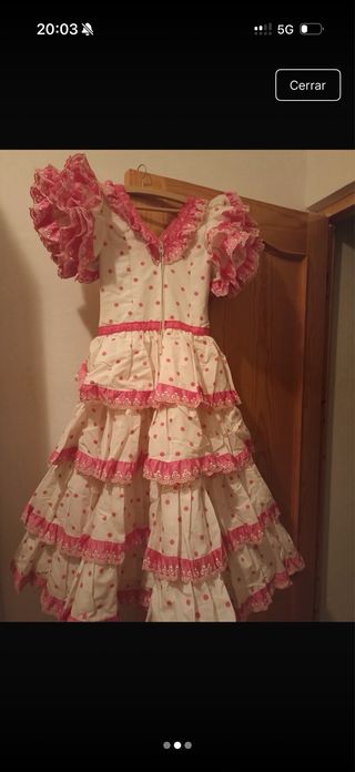 Vestido flamenca talla 8 sños hecho a mano en rosa y blanco