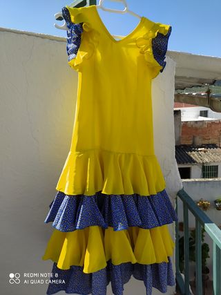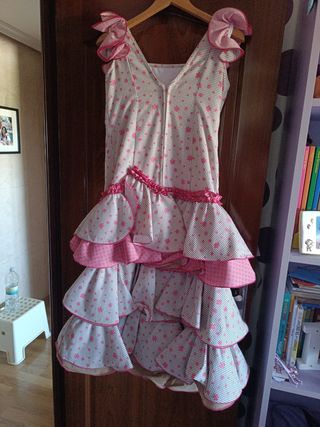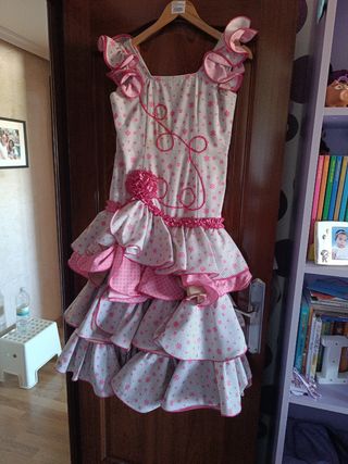 vestido flamenca para niña de 6-7 años,se puede arreglarlo ,tiene mas tela dentro. Puede pedir medida del vestido ,se lo mando yo las fotos de la medida.