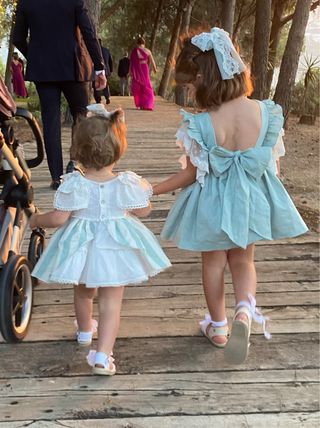 Precioso vestido de la marca Poéte, ideal para una niña. Es de color azul claro y tiene un estilo baby doll muy dulce.