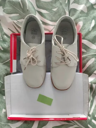 Elegantes zapatos para niño, perfectos para ocasiones especiales como la comunión. Fabricados con materiales de calidad. - Marca: Piel Bonita - Color: Beig - Talla: 34 - Cierre: Cordones - Diseño clásico y formal