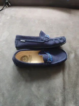Zapatos usados una hora en una ceremonia, tipo antelina, de vestir, niño, talla 37. Precio original 27,99 euros. Cómodos, modernos, elegantes. Seven Five, de Merkal.