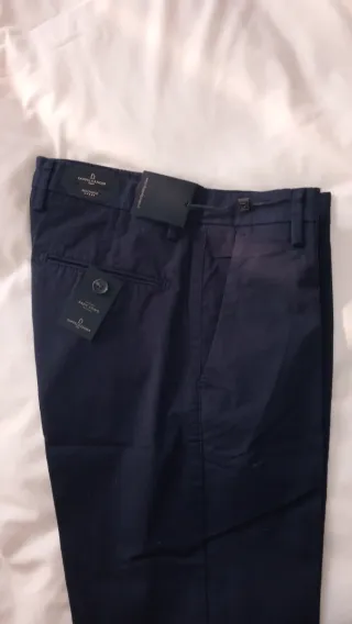 Pantalón NUEVO de vestir para niño tipo Chino color negro. Pone talla 44 pero es pequeño, VER LAS MEDIDAS Largo 100 m Contorno cintura 79cm Cintura 37 cm Cadera 45 Tiro 25 cm Largo entrepierna 78 Muslo 2,5 y bota 16