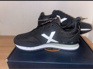 Zapatillas deportivas Munich para niño. - Diseño moderno en color negro con detalles blancos. - Cierre de cordones para un ajuste seguro. - Suela de goma para mayor durabilidad.