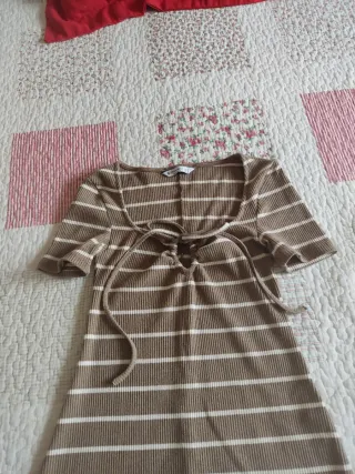 Vestido niña rayas marrón y blanco