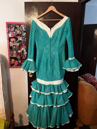 Traje de flamenca verde con volantes