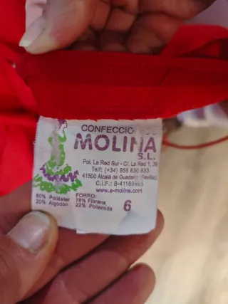 Traje de flamenca de color rojo con volantes con bordes de flores. La altura como mucho es de 1,50. En la talla pone 8 pero podría valer 10