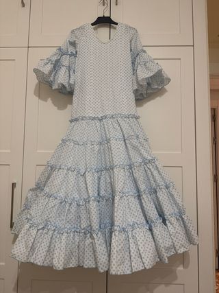 Traje de flamenca para niña celeste