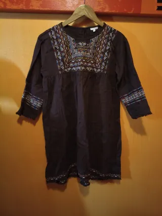 Vestido niña bordado marrón multicolor